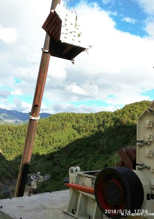 上图所示为傈僳族碎石生产线吊装现场,130吨大型吊车加20吨配重加挖掘机压背才吊上去。