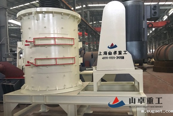 物料由机器上部垂直落入高速旋转的叶轮内,在高速离心力的作用下,与另一部分以伞状形式分流在叶轮四周的物料产生高速撞击与粉碎,物料在互相撞击后,又会在叶轮和机壳之间以物料形成涡流多次的互相撞击、摩擦而粉碎,从下部直通排出,形成闭路多次循环,由筛分设备控制达到所要求的成品粒度。